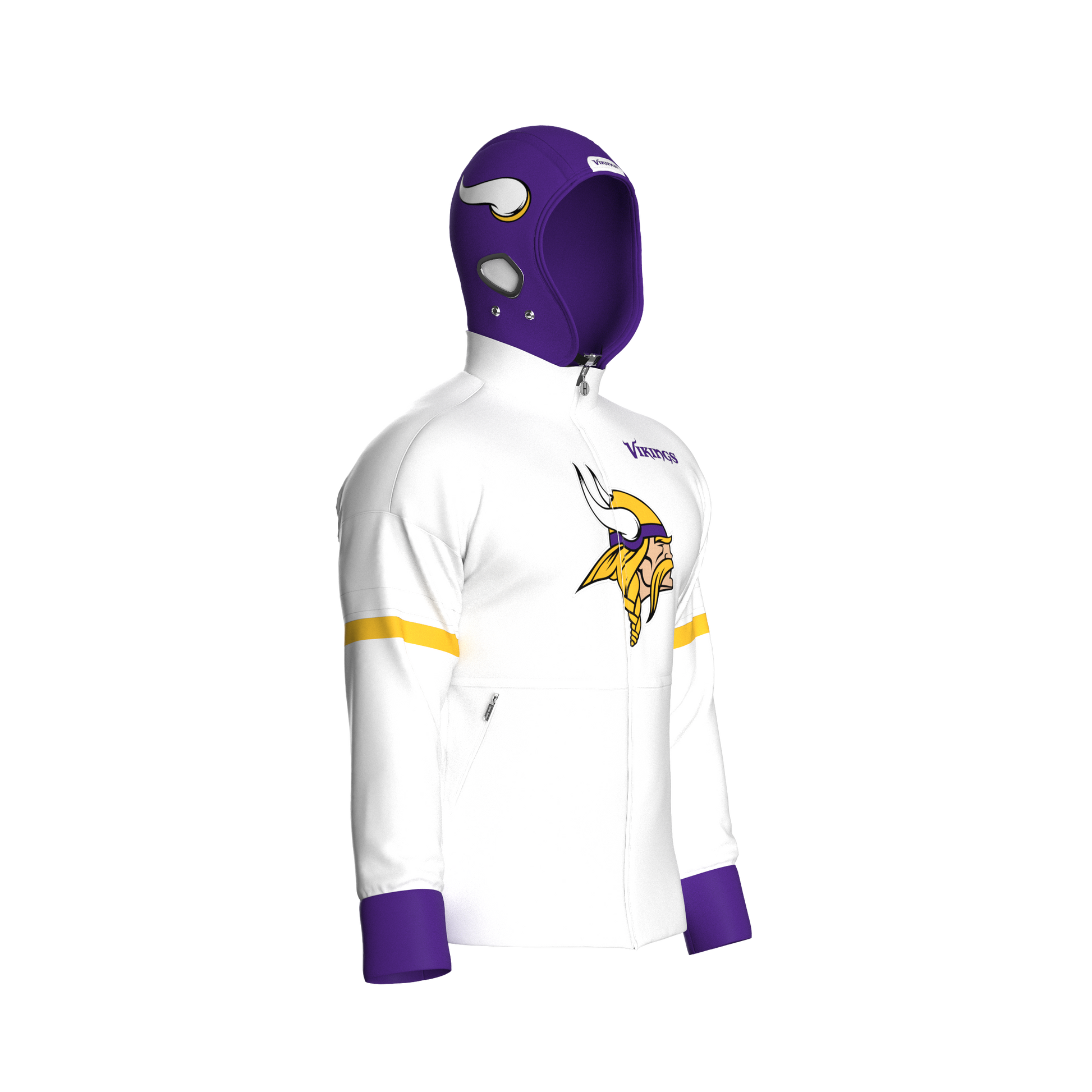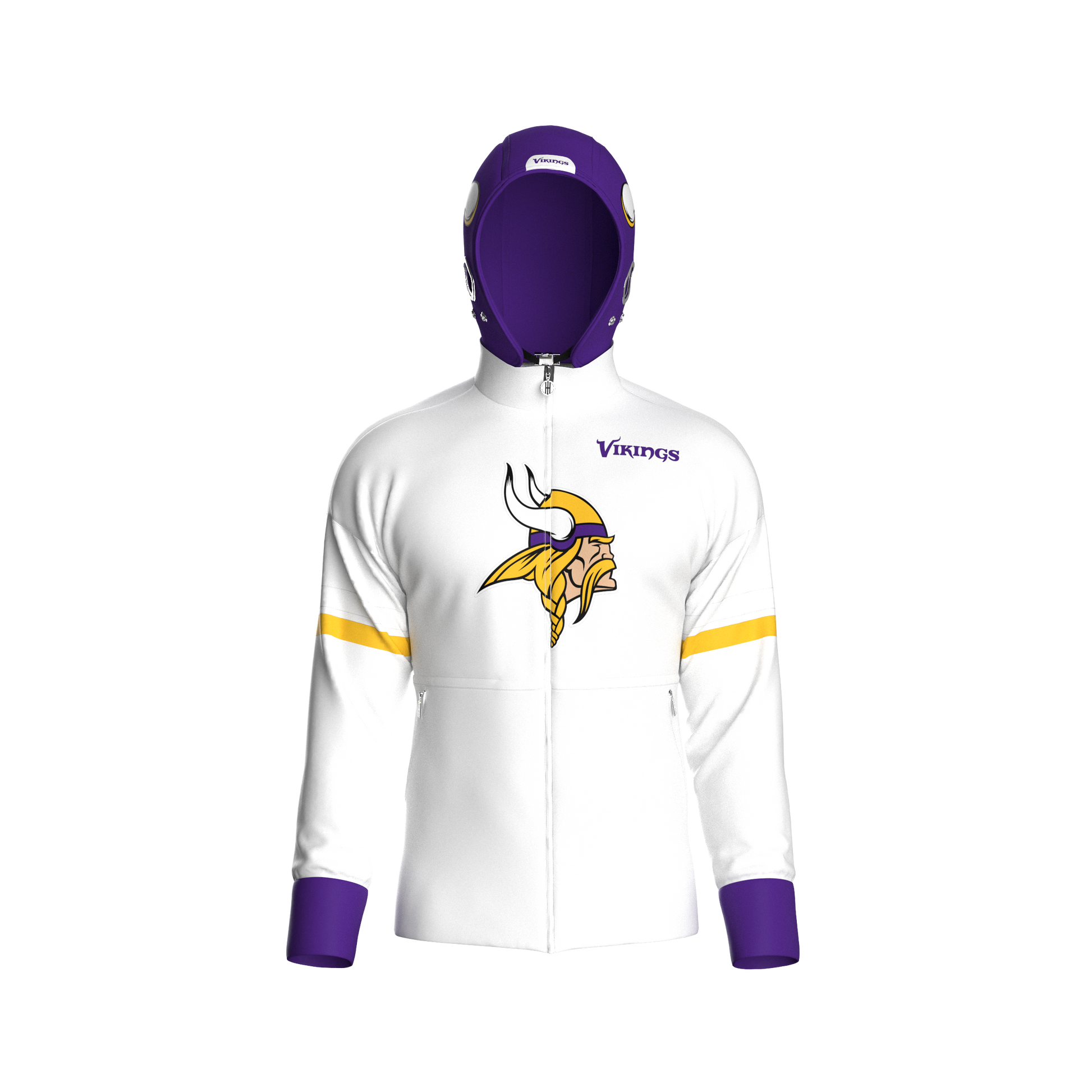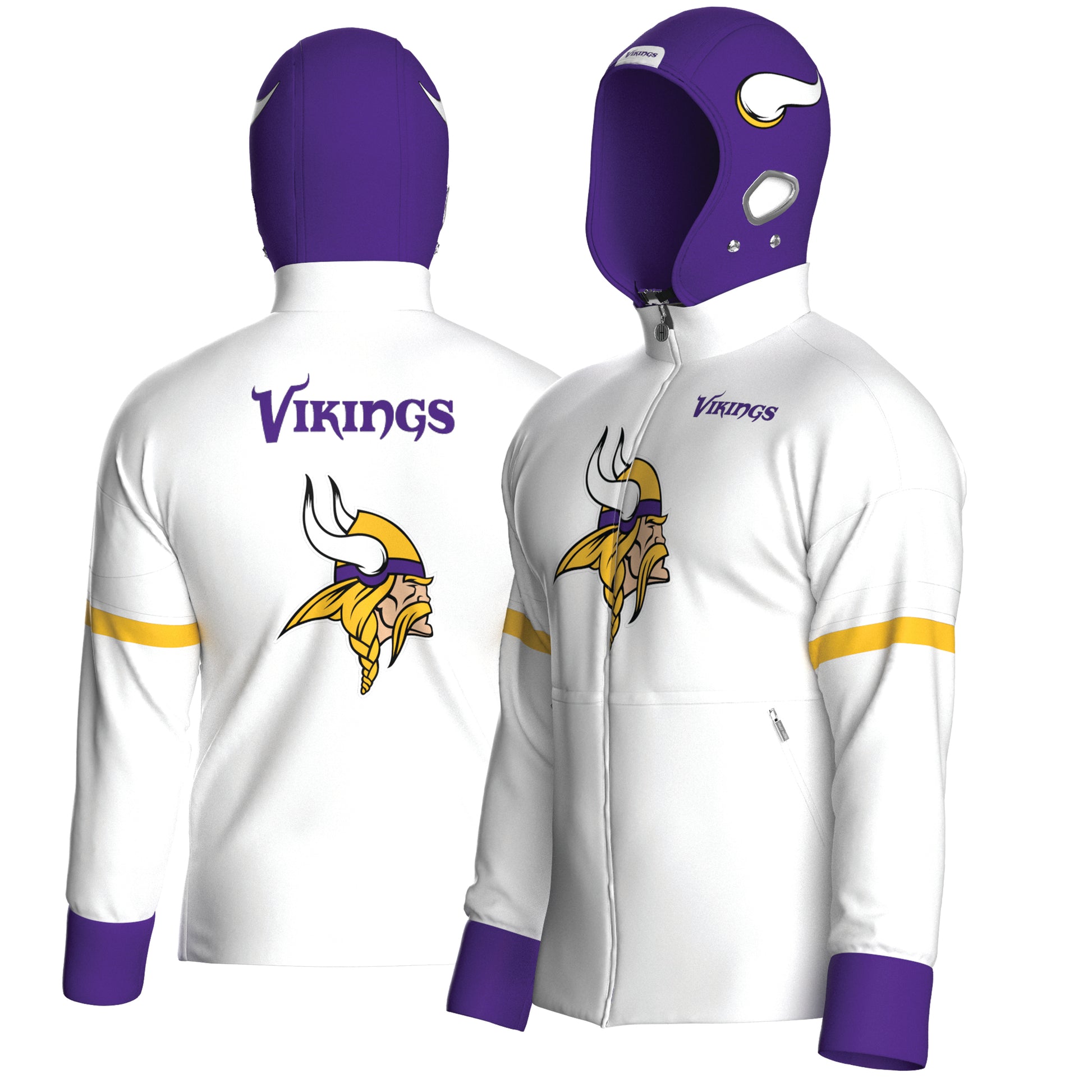 Get ready for action and look like a pro with this Minnesota Vikings Full Zip-Up Body. Mix and match hoodies for warmth, along with striking team graphics on the front, back and sleeve will have you outfitted like a MVP!