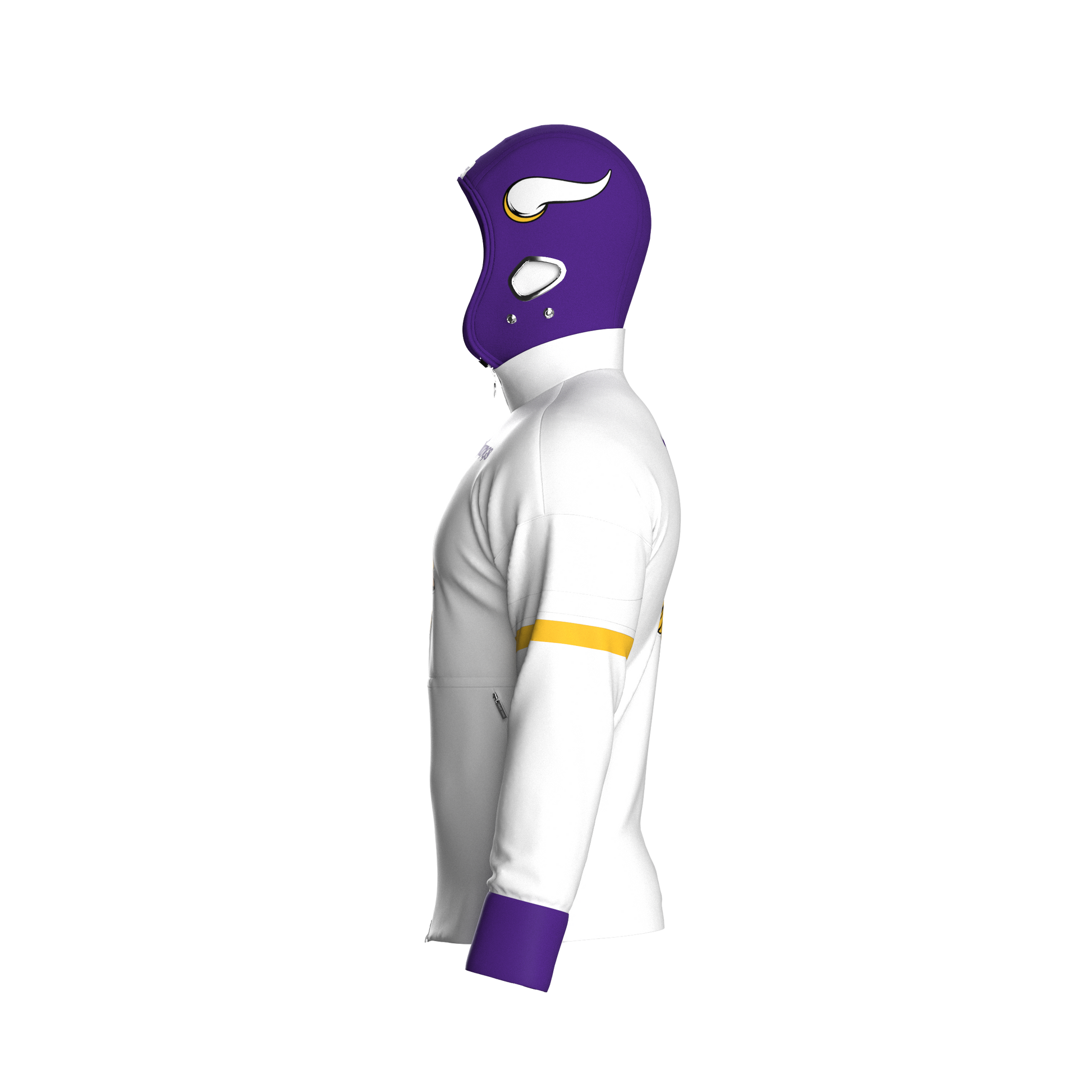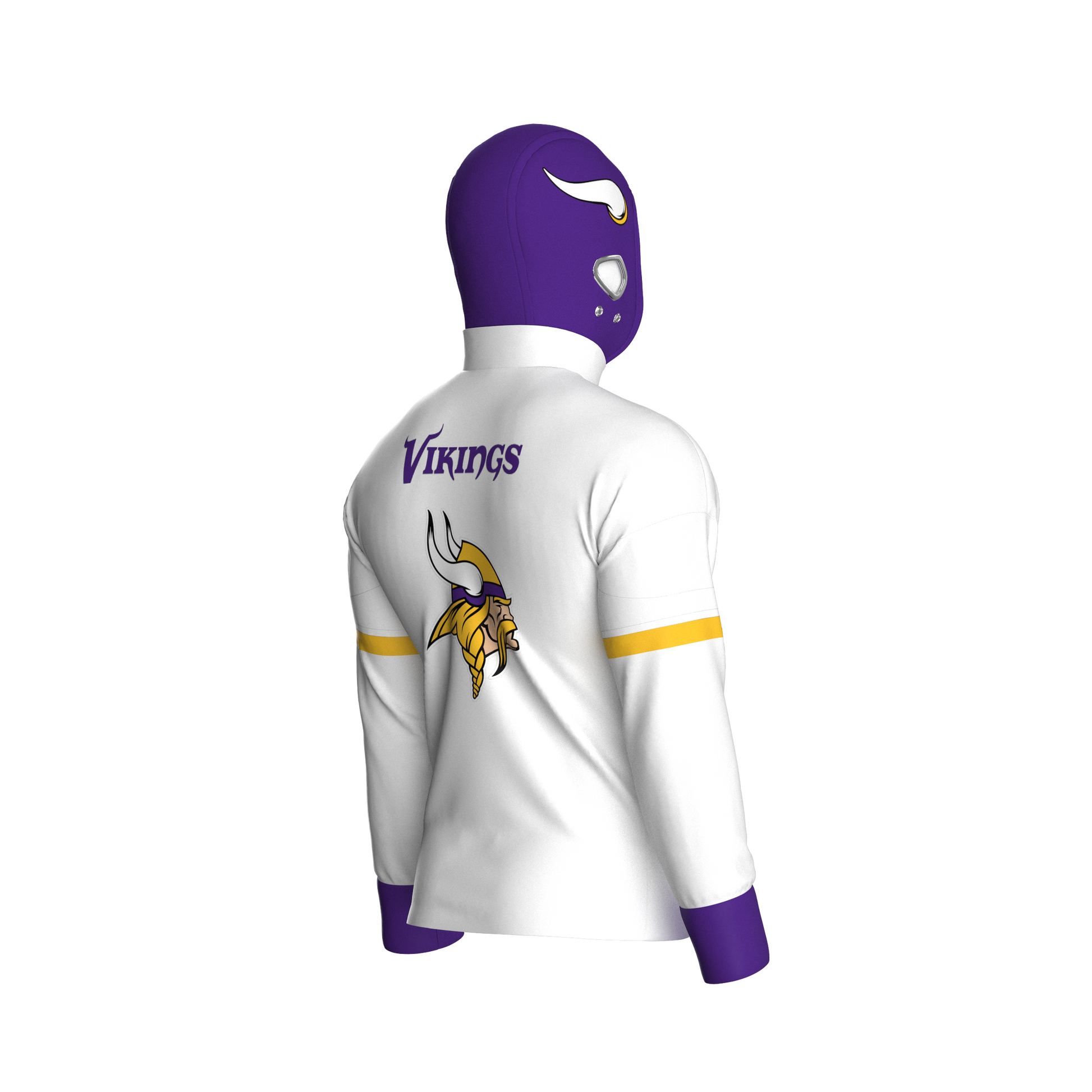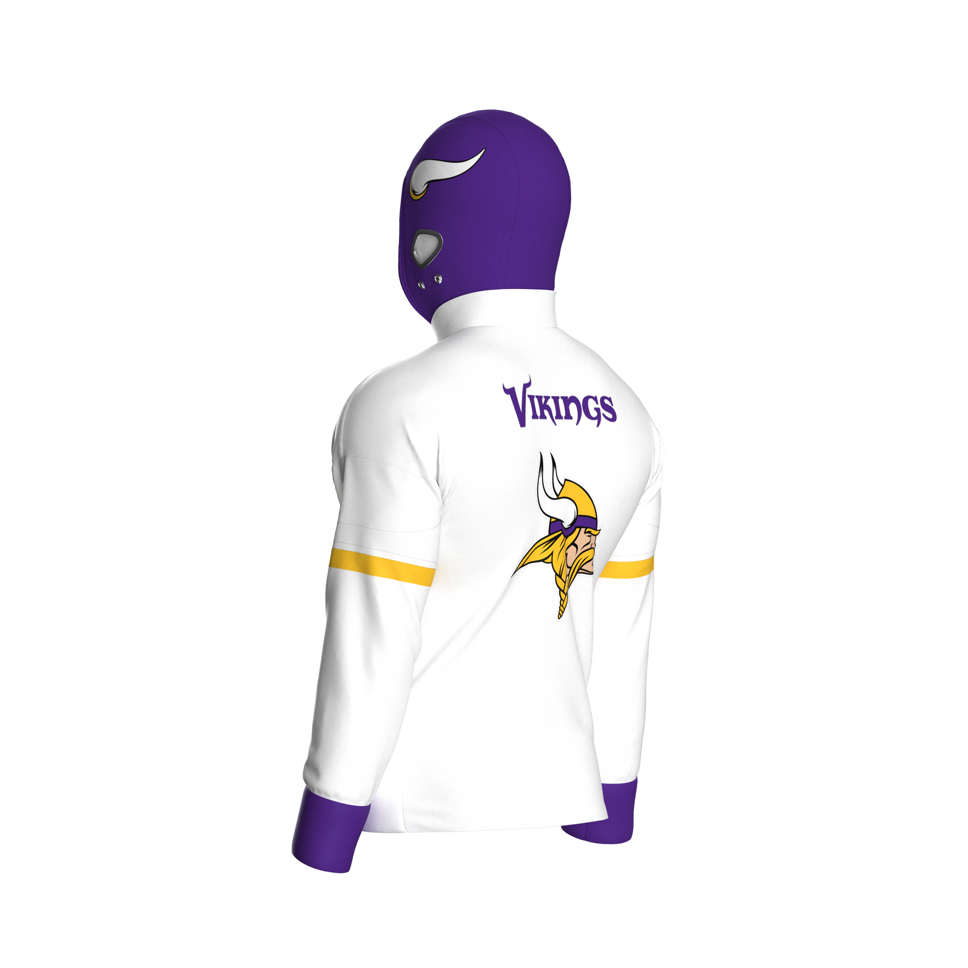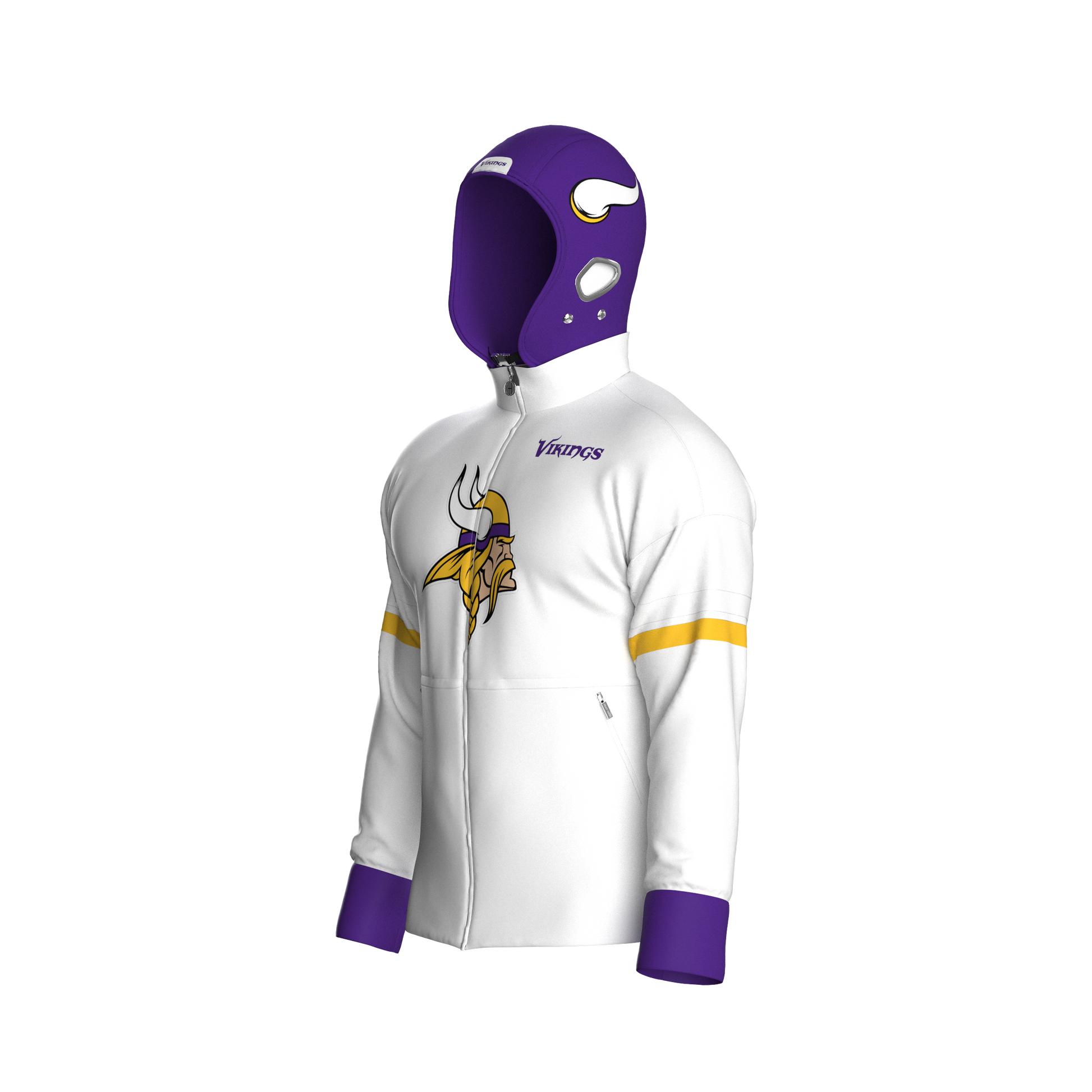 Get ready for action and look like a pro with this Minnesota Vikings Full Zip-Up Body. Mix and match hoodies for warmth, along with striking team graphics on the front, back and sleeve will have you outfitted like a MVP!
