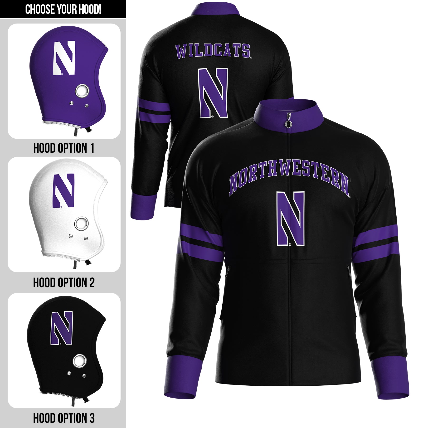 Get ready for the coin toss with this Northwestern University Full Zip-Up Body. Keep your hands warm with two zipper pockets. Mix and match our various hood options with our hidden zipper in the collar of the body, keeping you warm while fully representing your team. The body boasts bold team graphics on the font, back and sleeve, which will have you looking like a Pro!