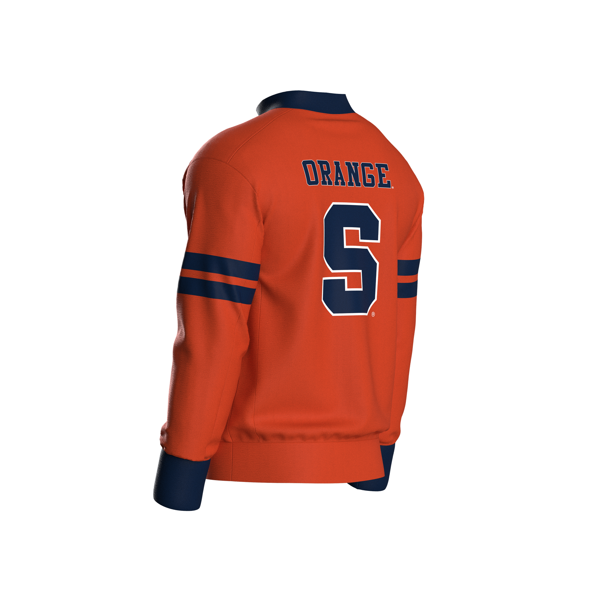 Get ready for the coin toss with this Syracuse University Full Pullover Body. Keep your hands warm with a kangaroo pocket. Mix and match our various hood options with our hidden zipper in the collar of the body, keeping you warm while fully representing your team. The body boasts bold team graphics on the font, back and sleeve, which will have you looking like a Pro!